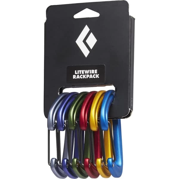 D’une fonctionnalité extrême, le LITEWIRE RACKPACK de BLACK DIAMOND est un lot de six mousquetons LiteWire à code couleurs correspondant aux Camalots pour un repérage facilité.