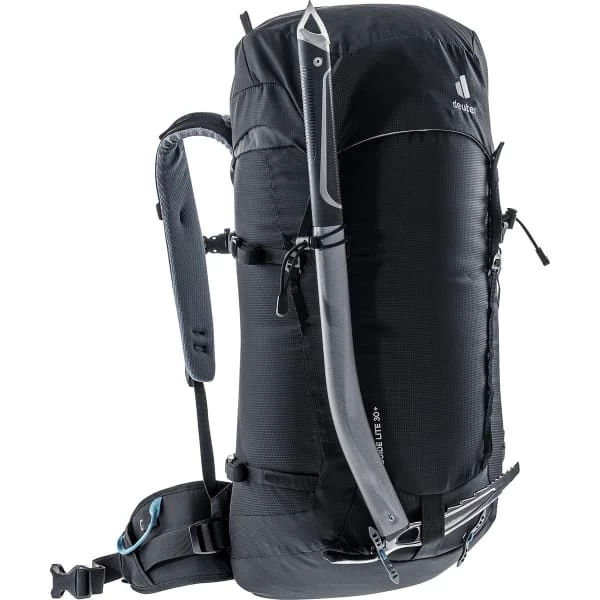 Le grand atout du sac Deuter Guide Lite 30+ est son poids : seulement 850 grammes. À la fois léger et résistant, le Guide Lite 30+ bénéficie d’une fabrication en 100D PA HIGH TENACITY et 630D PA (matériaux durables). Épuré et fonctionnel, ce sac à dos possède les 3 compartiments essentiels, à savoir 2 compartiments zippés de suite accessibles à partir du rabat et le compartiment principal (30 + 6 litres), muni d’une poche pour système d’hydratation (ou autre équipement). L’extérieur du sac se voit équipé de passants pour porte-casque et doté de multiples porte-matériels à utilisation rapide. Les instructions en cas de confrontation à une situation de SOS sont indiquées sous le rabat.