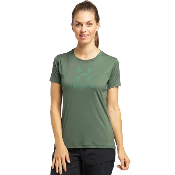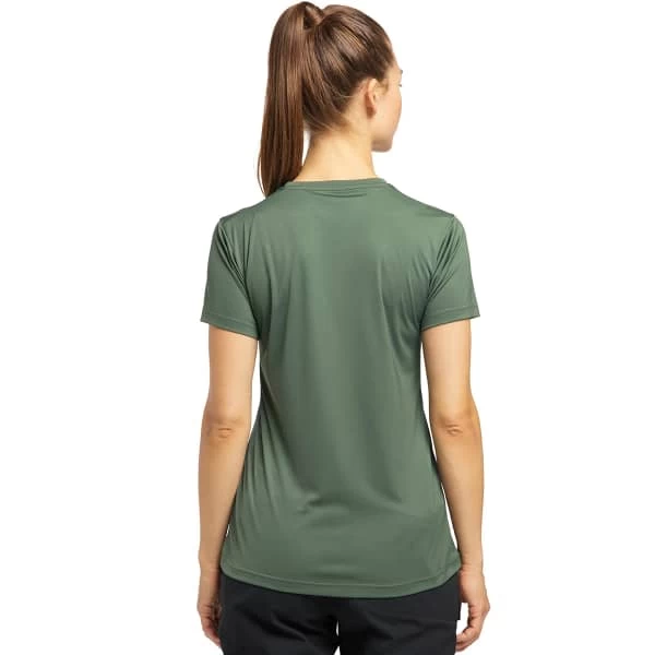 Le GLEE TEE W de la marque HAGLÖFS est un tee-shirt doux et résistant pour femme confectionné en polyester recyclé, extensible des quatre côtés.