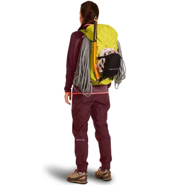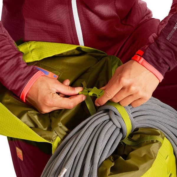 Bien accessoirisé, ce modèle dispose aussi d’un système de fixation pour la corde, le piolet et l’équipement de sécurité, d’un compartiment compatible système d’hydratation et d’un schéma représentant les signaux d’urgence en montagne. L’accès au compartiment principal se fait facilement par un zip circulaire ou une ouverture innovante sur le dessus.