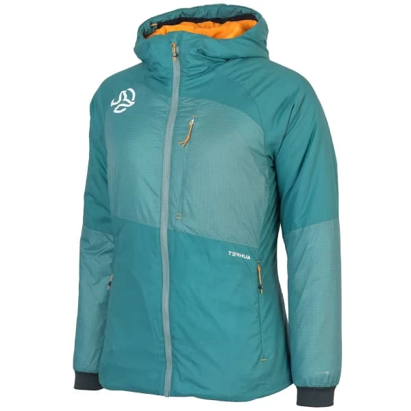 Éco-responsable et multifonction, la KUANTIC HOOD W de Teruna est une veste à capuche pour femme qui apporte la juste dose de chaleur quand la sportive en a besoin.