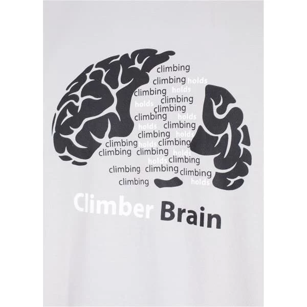 Son impression sur le buste affirme son amour pour la grimpe.